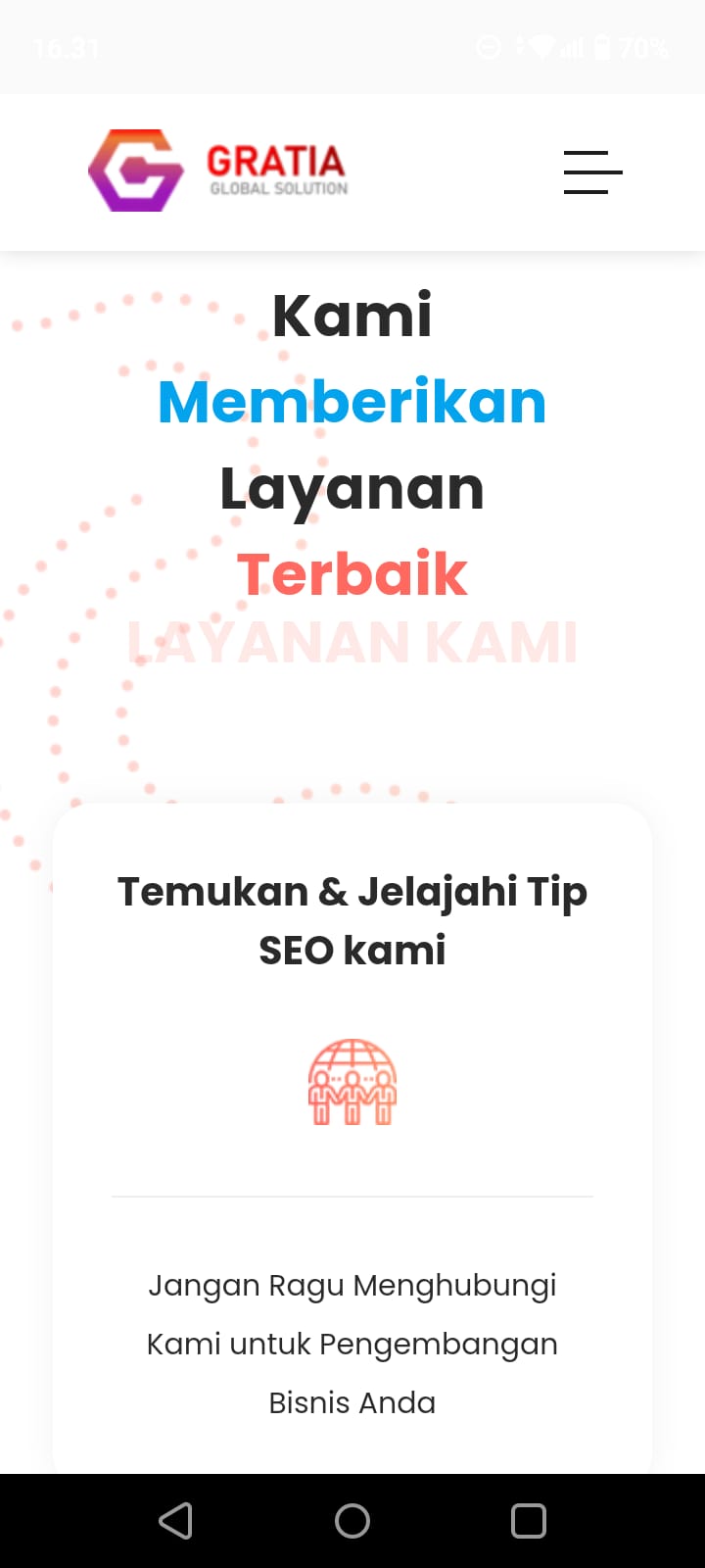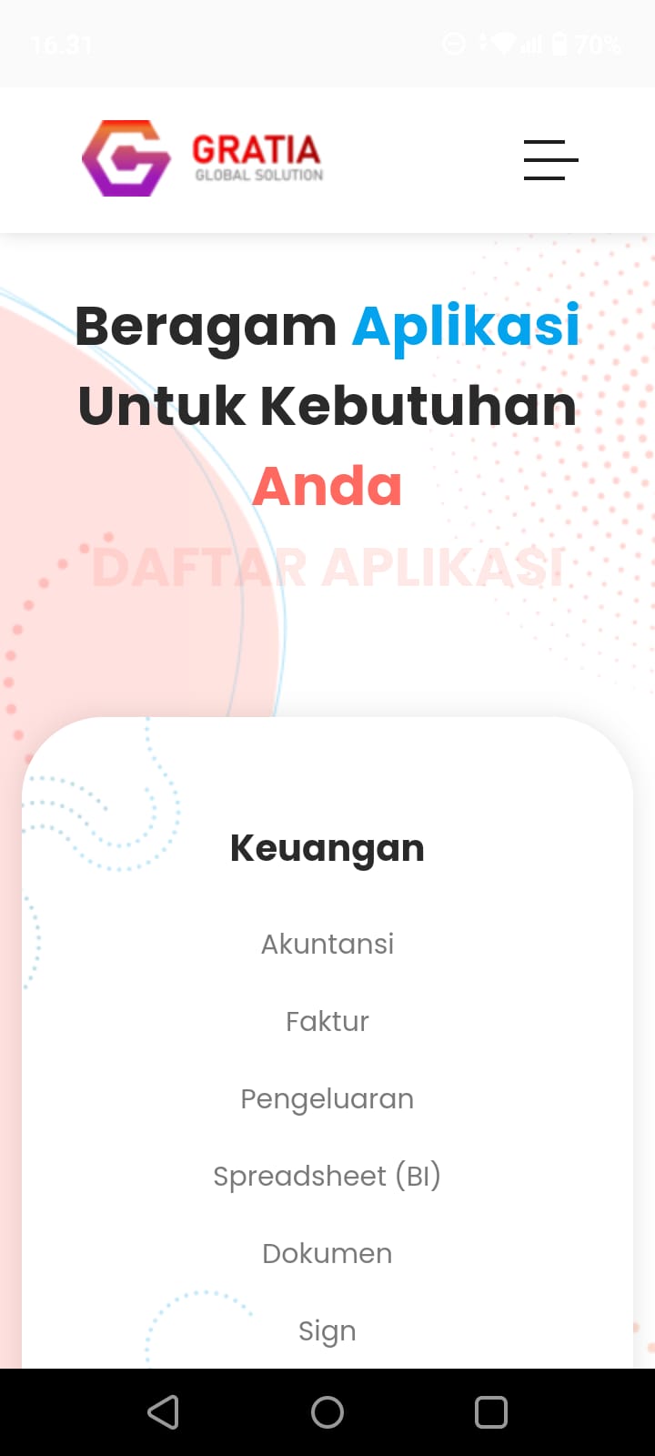 | Deskripsi Lengkap | : | Aplikasi GrasiApp merupakan aplikasi berbasis Android yan dikembangkan oleh PT. Gratia Global Solutions yang dipimpin oleh Meryza Sari. Aplikasi ini menawarkan jasa Pembuatan Website, Aplikasi, Digital Marketing dan sebgainya. | |