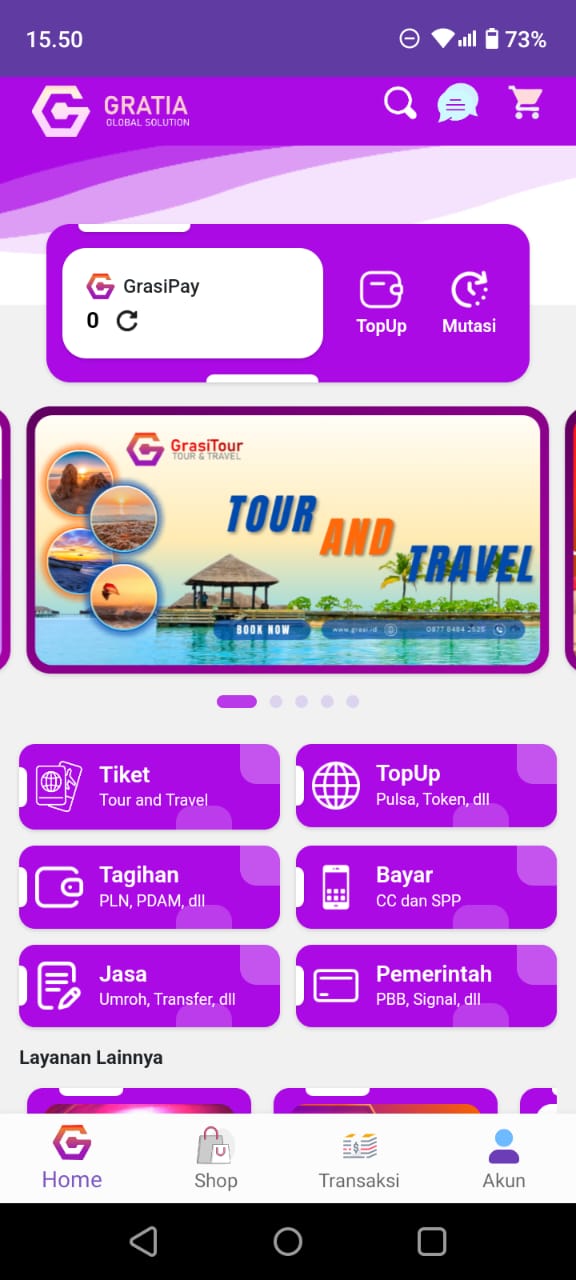 | Deskripsi Lengkap | : | Aplikasi GrasiTour merupakan aplikasi berbasis Android yan dikembangkan oleh PT. Gratia Global Solutions yang dipimpin oleh Meryza Sari. Aplikasi ini menjual berbagai Produk Digital dan Produk Fisik. | |